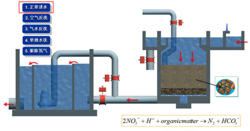 特點:具有較高的脫氮效率,濾床深度(dù)一般在 3 - 6 米,能承受較(jiào)大的水力負荷;反硝化過程中不需(xū)要額(é)外(wài)的碳源時,可利用水中的有機物作為碳源,節省運行(háng)成本;同時兼具過濾功能(néng),可去除水中的懸浮(fú)物等雜質。